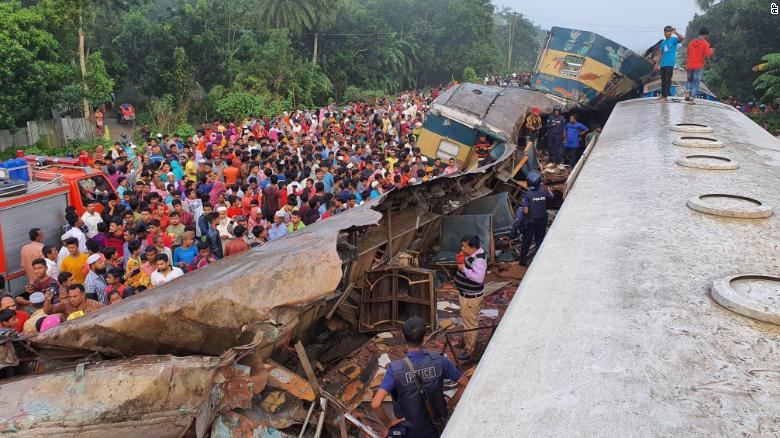 ဘင်္ဂလားဒေ့ရှ်တောင်ပိုင်း ဆိပ်ကမ်းမြို့ စစ်တကောင်းသို့ ဦးတည်ခုတ်မောင်းနေတဲ့ ရထားနဲ့ ဒါကာမြို့တော်သို့ ခုတ်မောင်းသွားနေတဲ့ ရထားတို့ဟာ ယနေ့ (နိုဝင်ဘာ ၁၂ ရက်) ဒေသစံတော်ချိန် မနက် ၃ နာရီဝန်းကျင်က မြို့တော်အရှေ့ဘက် ၆၂ မိုင်ခန့်အကွာ ဘရာဟ်မင်ဘာရီယာခရိုင်အတွင်း ခေါင်းချင်းဆိုင် တိုက်မိခဲ့ကြတာ ဖြစ်ပါတယ်။