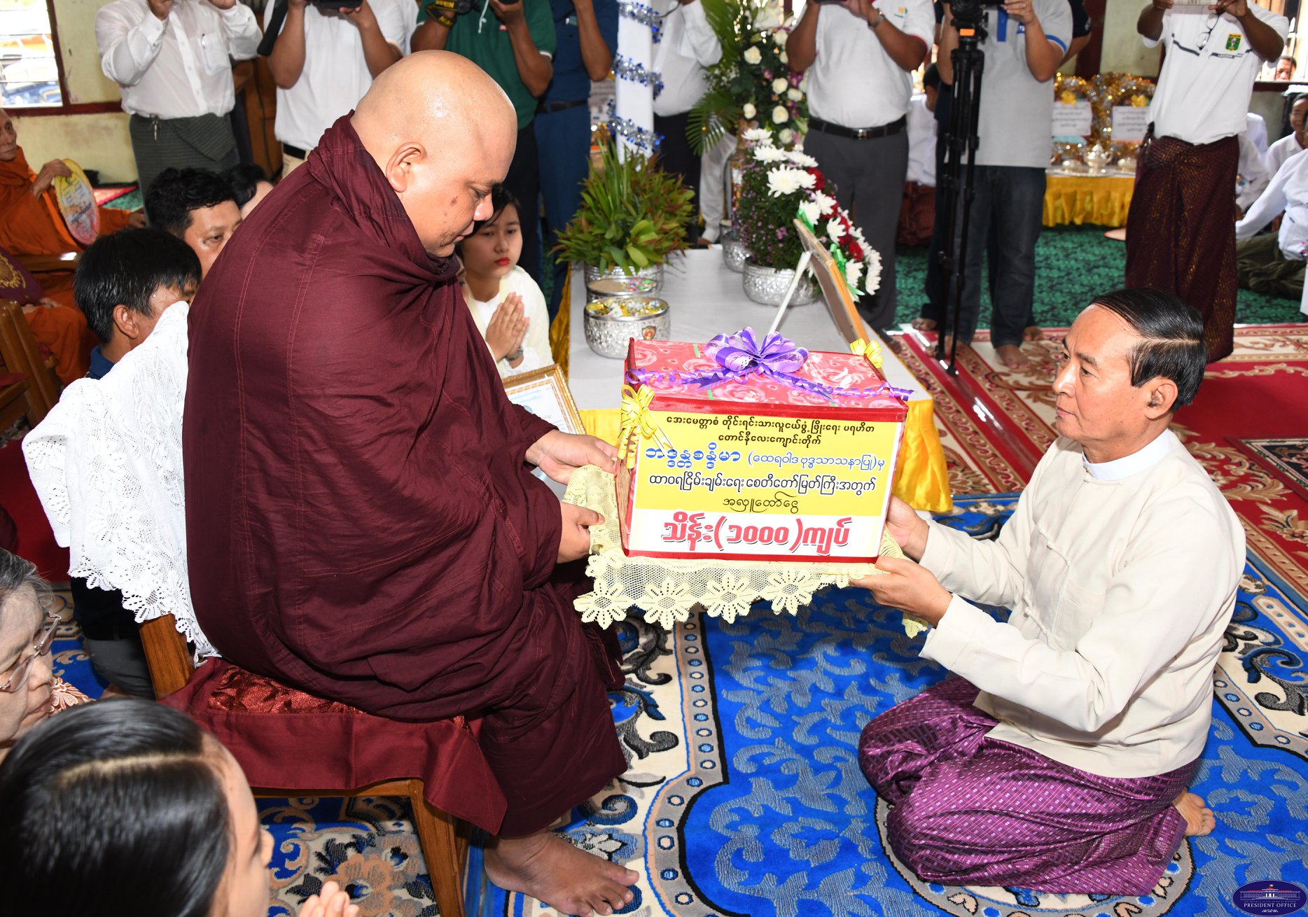 ဆရာတော်ပေးအပ်တဲ့ အလှူငွေကို နိုင်ငံတော်သမ္မတဦးဝင်းမြင့်က လက်ခံရယူပြီး စေတီတော် တည်ဆောက်ရေး ဦးစီးကော်မတီ ဒုတိယဥက္ကဋ္ဌ သာသနာရေးနှင့် ယဉ်ကျေးမှုဝန်ကြီးဌာန ဒုတိယ ဝန်ကြီး ဦးကြည်မင်းဆီကို လွှဲပြောင်း ပေးအပ်ခဲ့တယ်လို့ နိုင်ငံတော်သမ္မတရုံးက သတင်းထုတ်ပြန်ပါတယ်။