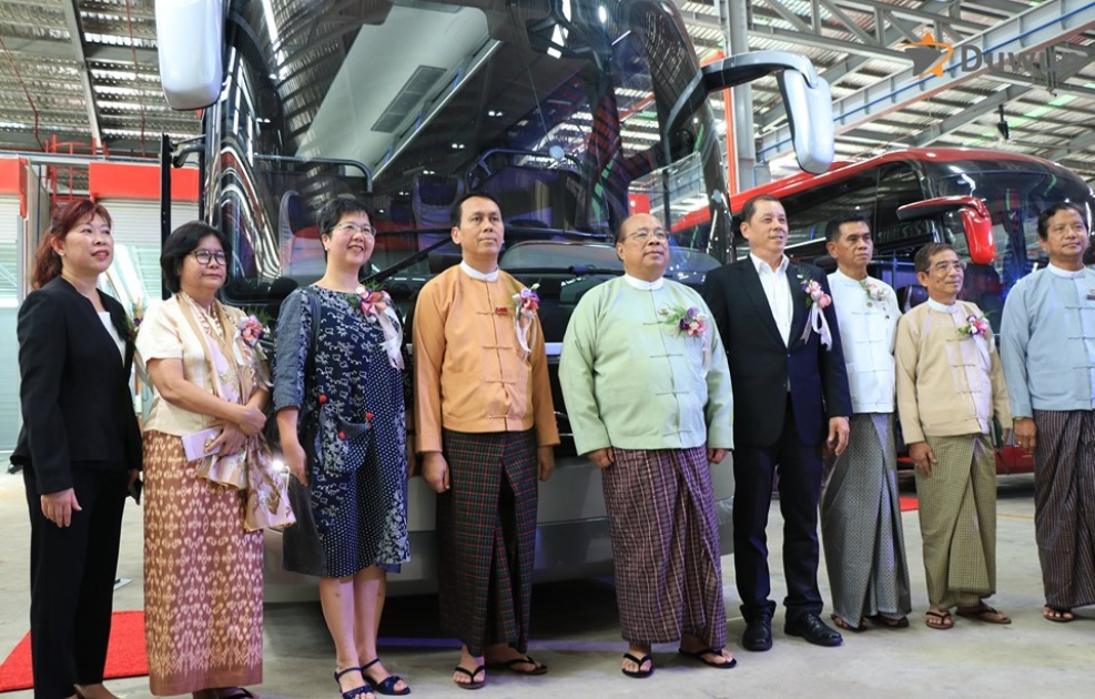 (မြန်မာနိုင်ငံမှာ ထုတ်လုပ်တဲ့ ဘတ်စ်ကားသစ်မိတ်ဆက်ပွဲ ပြုလုပ်စဉ်)